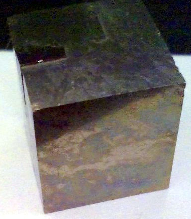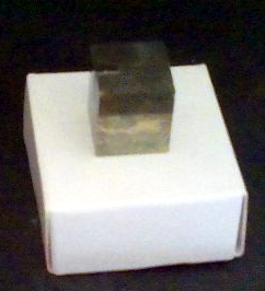 Pyrite cube of 1,5 x 1,5 x 1,4 cm. approx Faces are very bright and smooth.