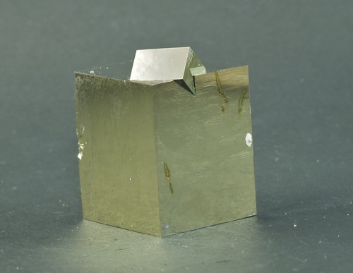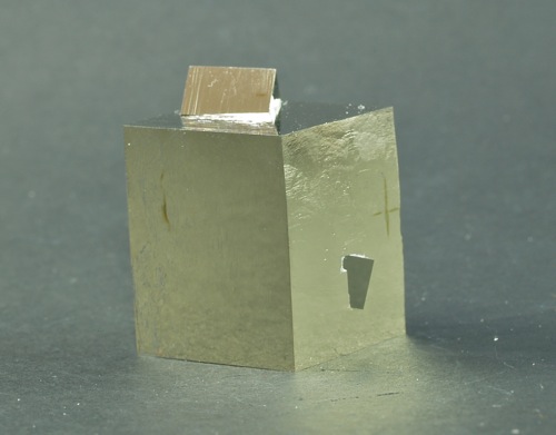 Pyrite twin 2 x 2,5 x 2 cm. and 1 x 0,5 x 0,5 cm approx. small crystal. High bright.